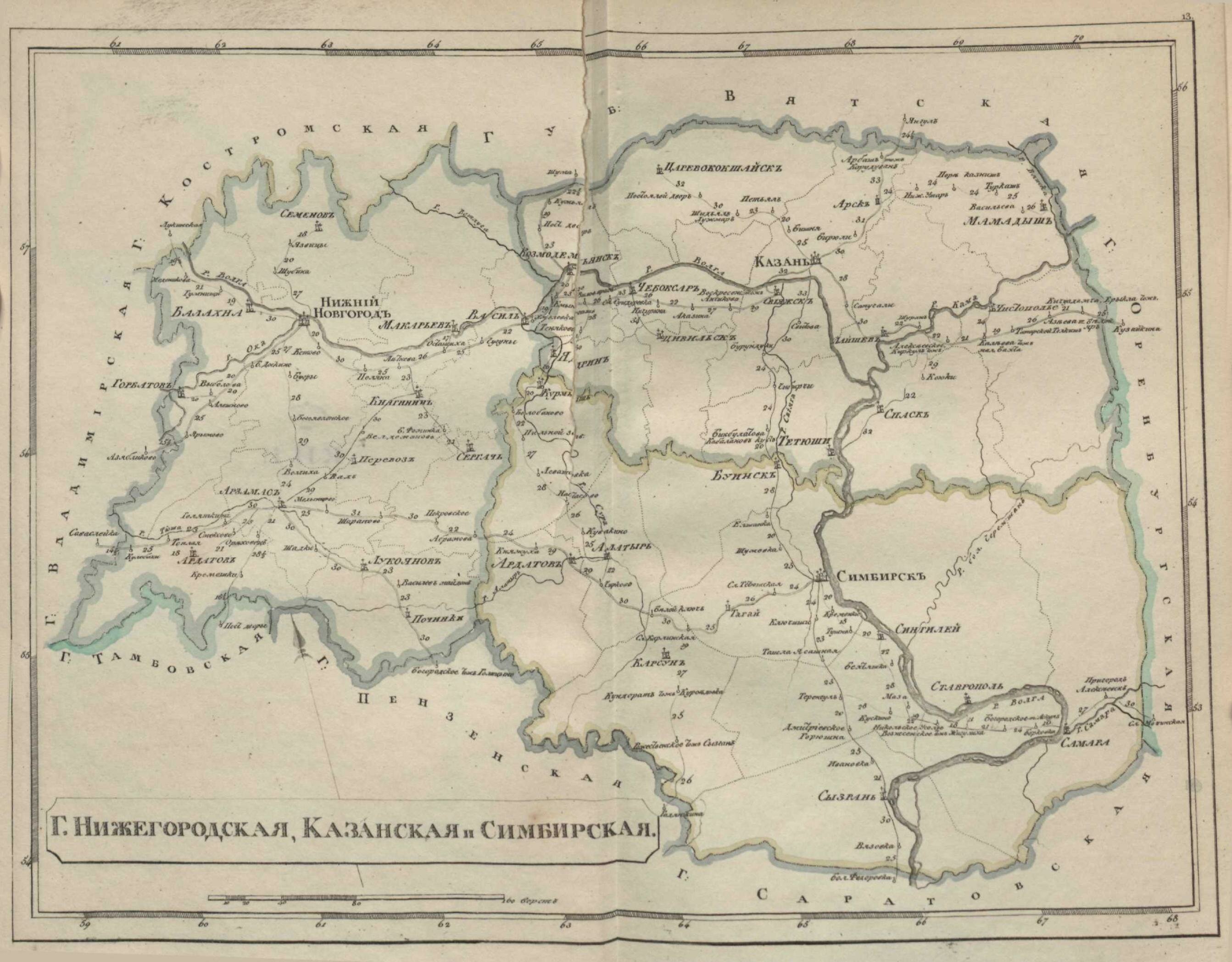 | карта Казанской, Нижегородской и Симбирской губерний | |