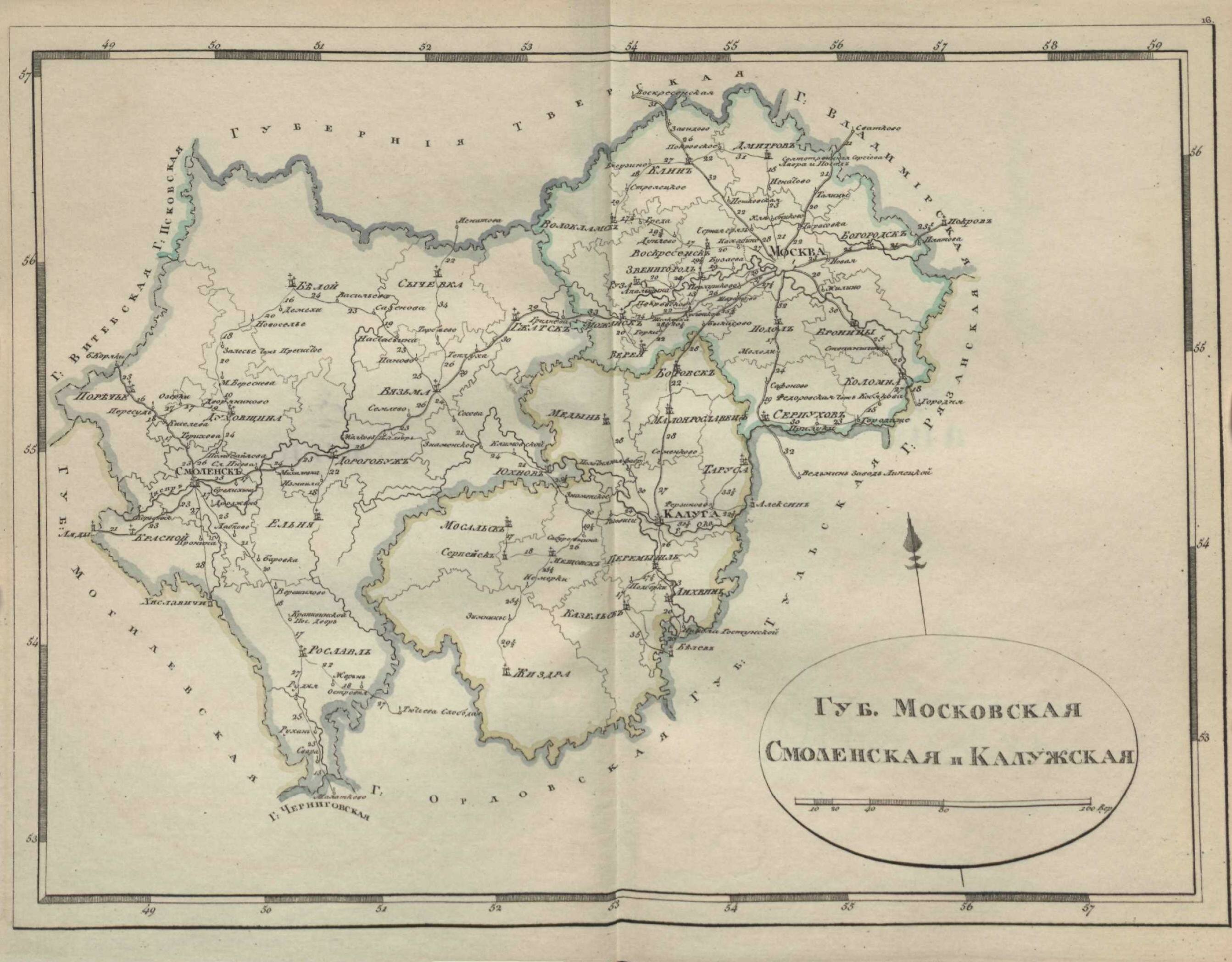 | карта Московской, Смоленской и Калужской губерний | |