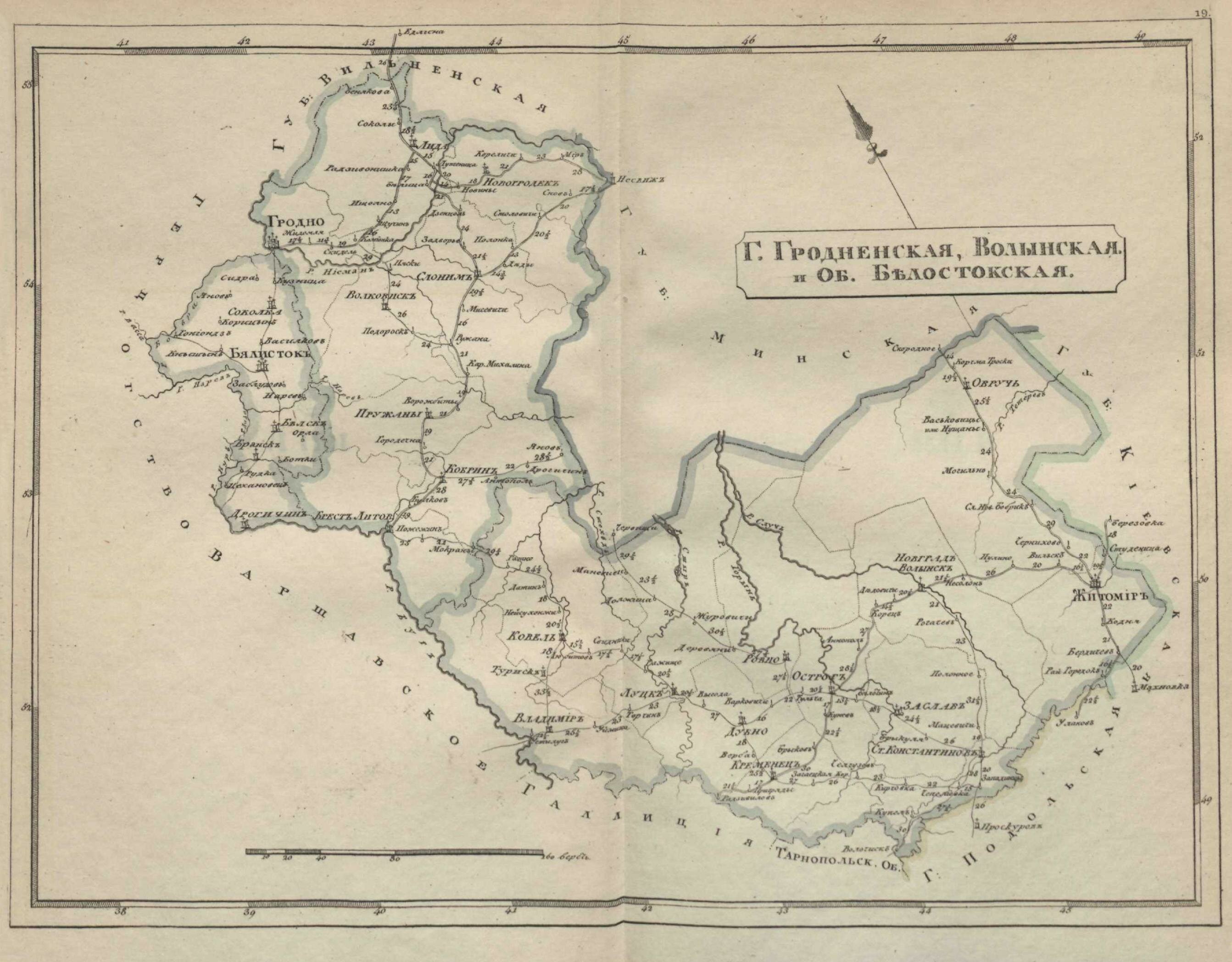 | карта Гродненской, Волынской губерний и Белостокской области | |