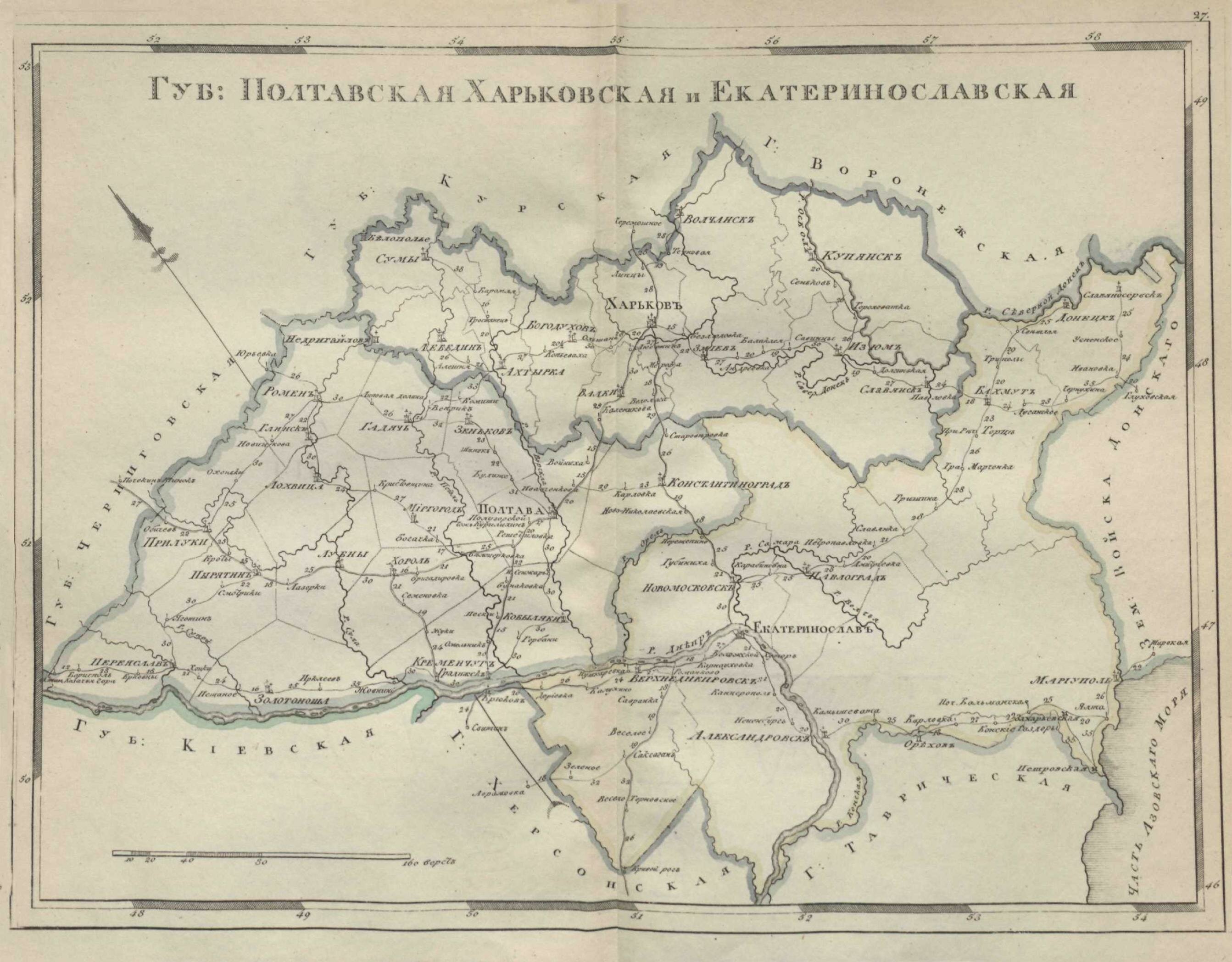 | карта Полтавской, Харьковской, Екатеринославской губернии | |