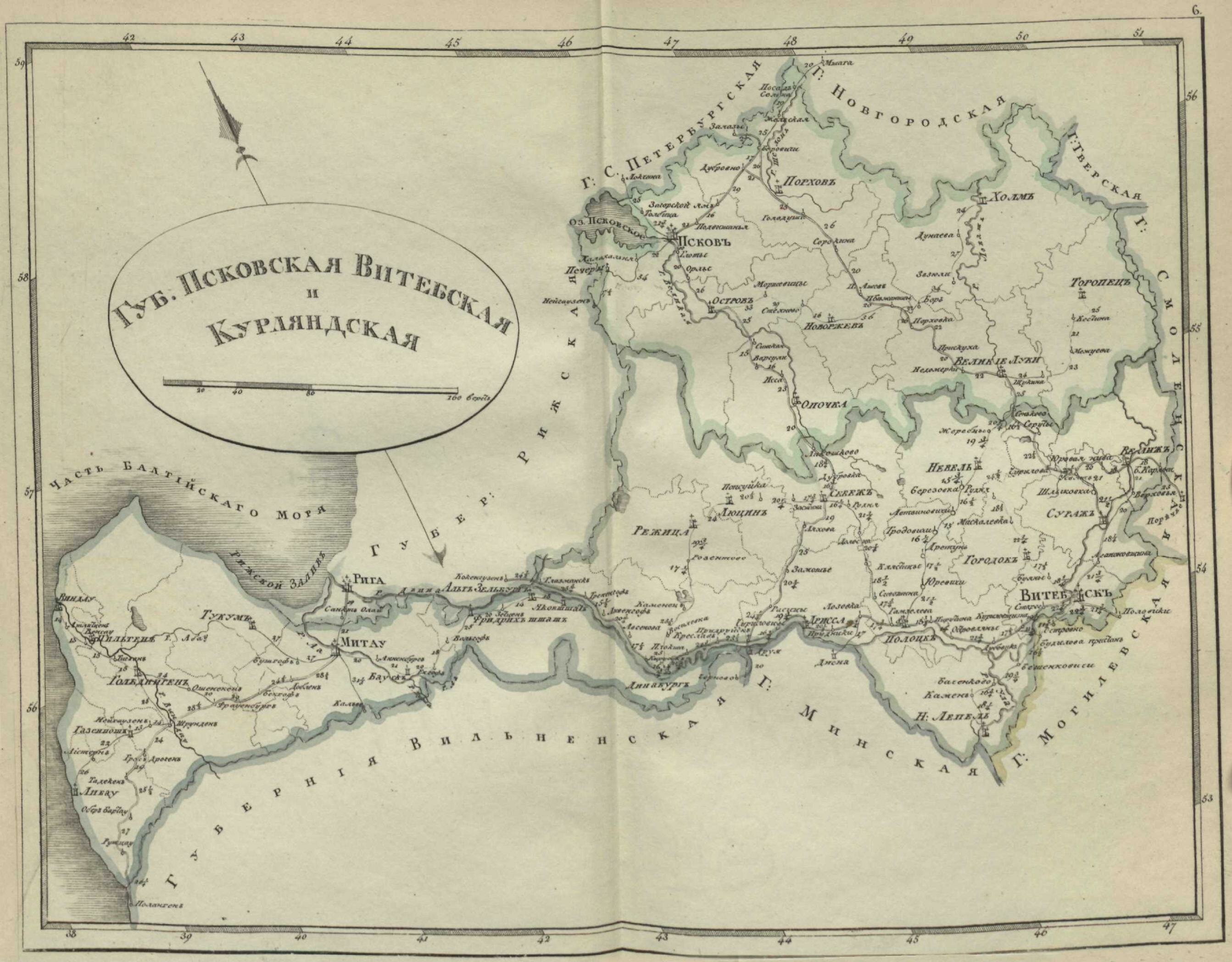 | карта Псковской, Витебской и Курляндской губерний | |