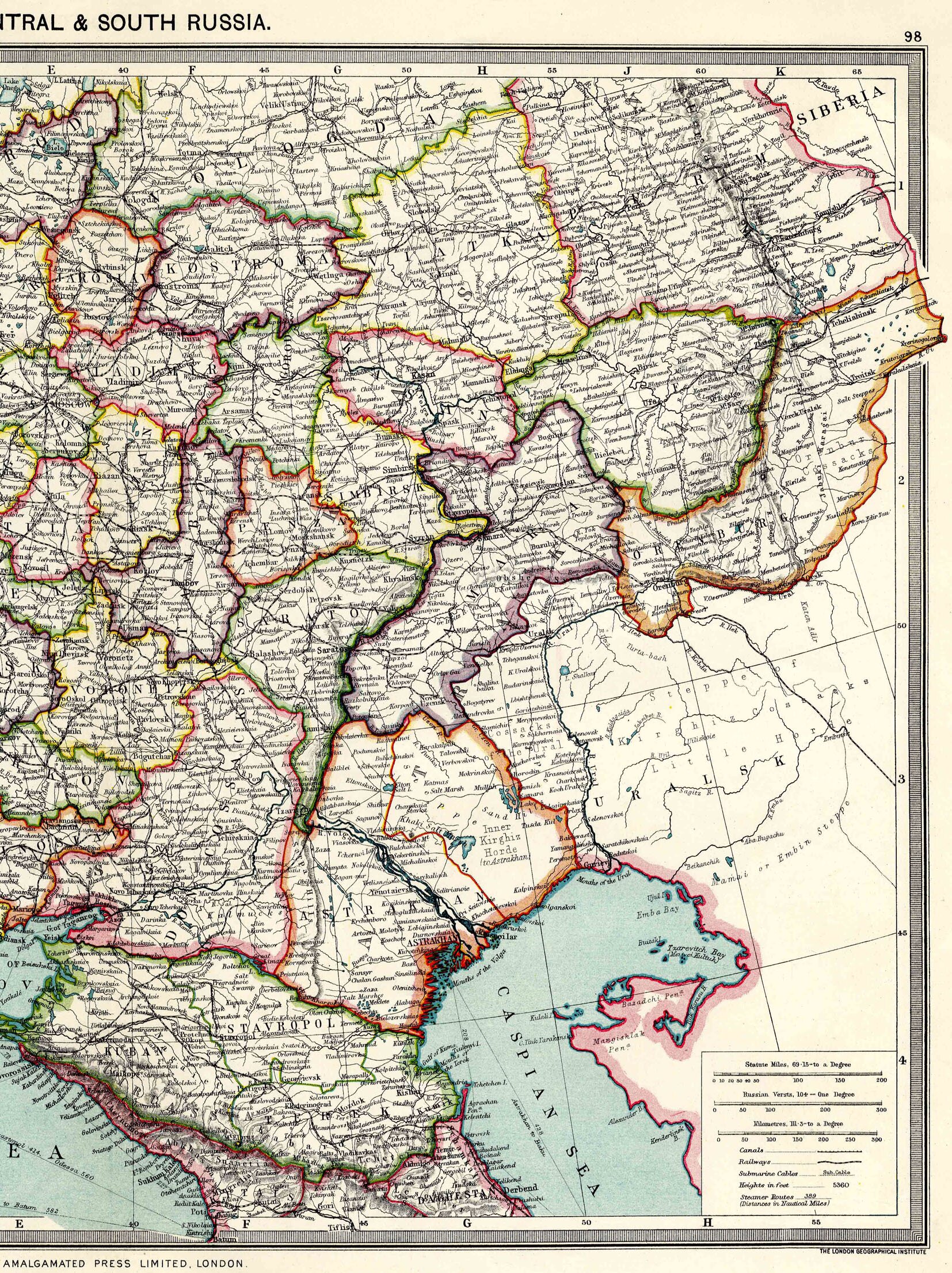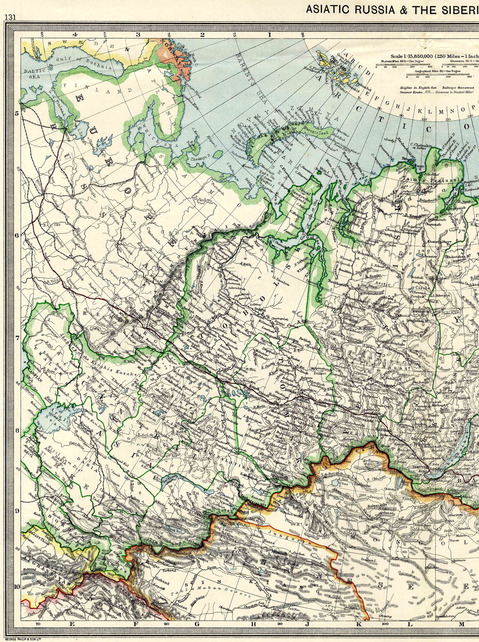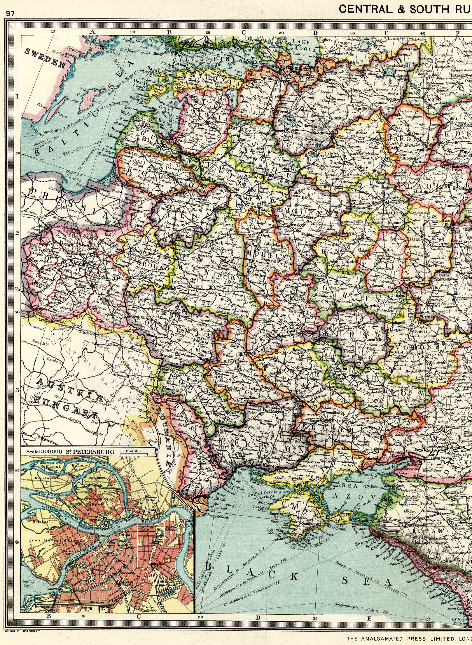 | Карты Российской империи из «Harmsworth Atlas and Gazetteer«, 1909 г: |