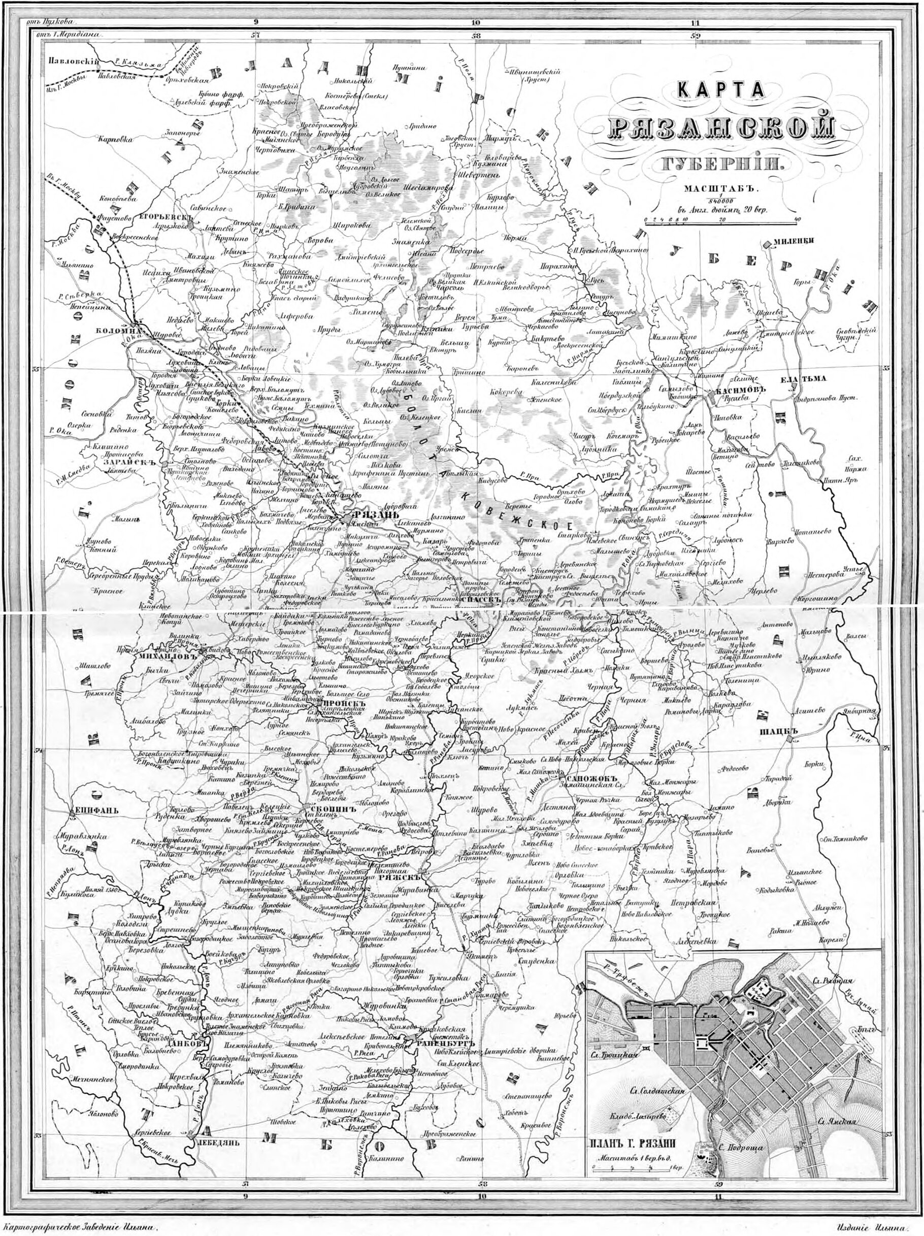 | карта Рязанской губернии | 20 верст | план г. Рязани | |