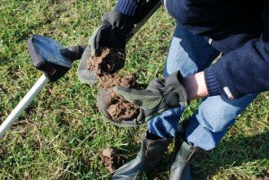Он идет по полю водя кольцом прибора над землей, прям как в кино про войну. Помимо прыгающих шкал на дисплее, металлоискатель постоянно издает звуки. Шипение значит, что ничего нет, молчание — есть черные металлы (по частоте молчаний мы понимаем насколько в земле богатый культурный слой) и всевозможные различные писки. Именно по ним и ориентируются стоит ли копать. По тому каким тоном пищит, как долго и каким образом когда проводишь над определенным местом, с определенной скоростью. Объяснить словами почему здесь копать нет смысла — невозможно, только опыт и интуиция.