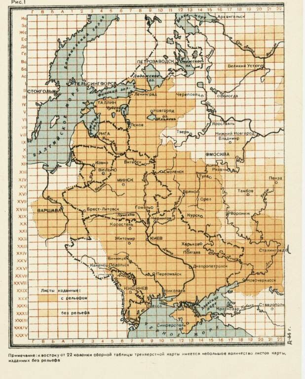 Военно-топографическая карта, как правило, издавалась всего в двух цветах: черная прорисовка на желтом фоне.