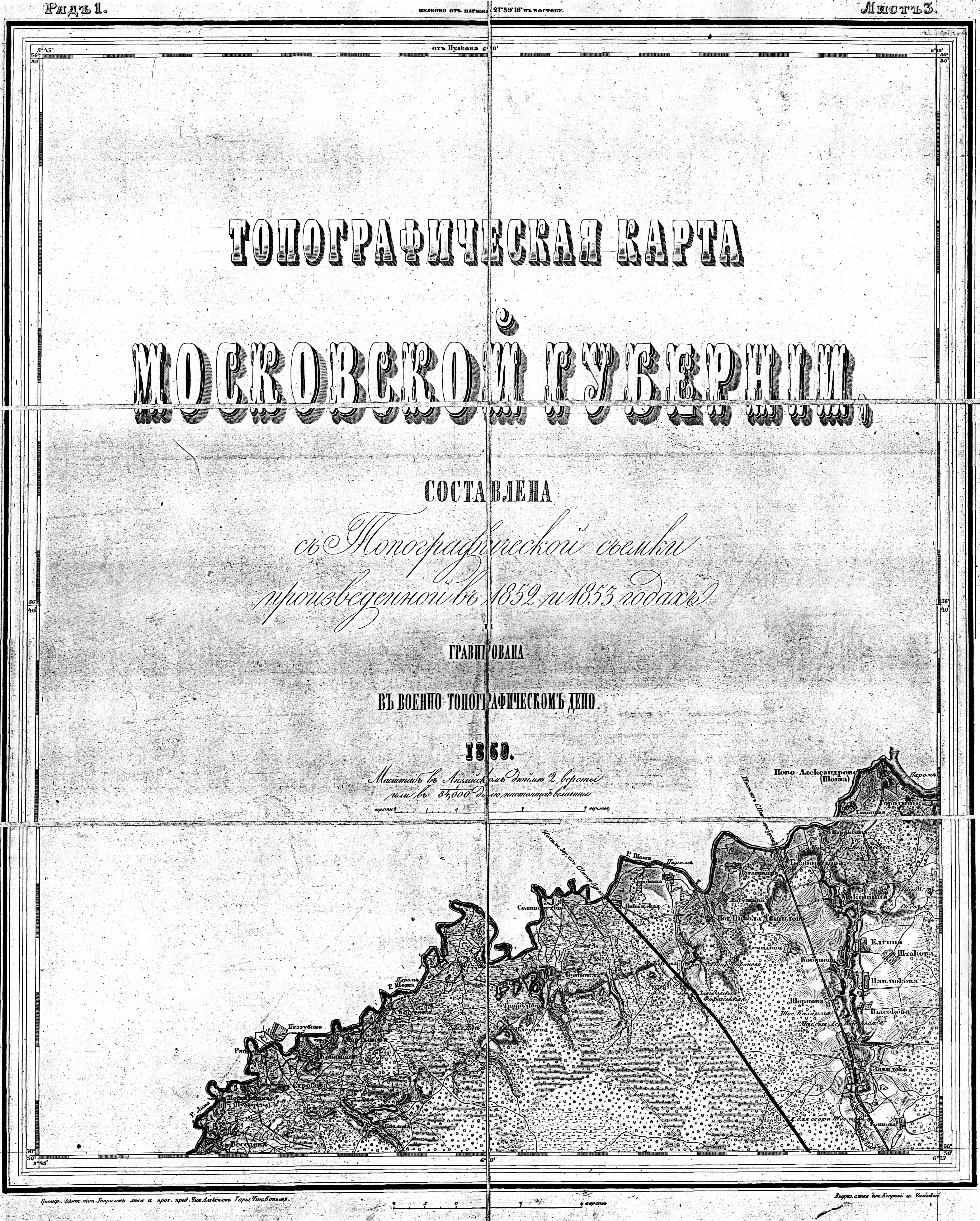 Фрагмент топографической карты Московской губернии 1860 г., выполненный в формате JPG (76 MB):