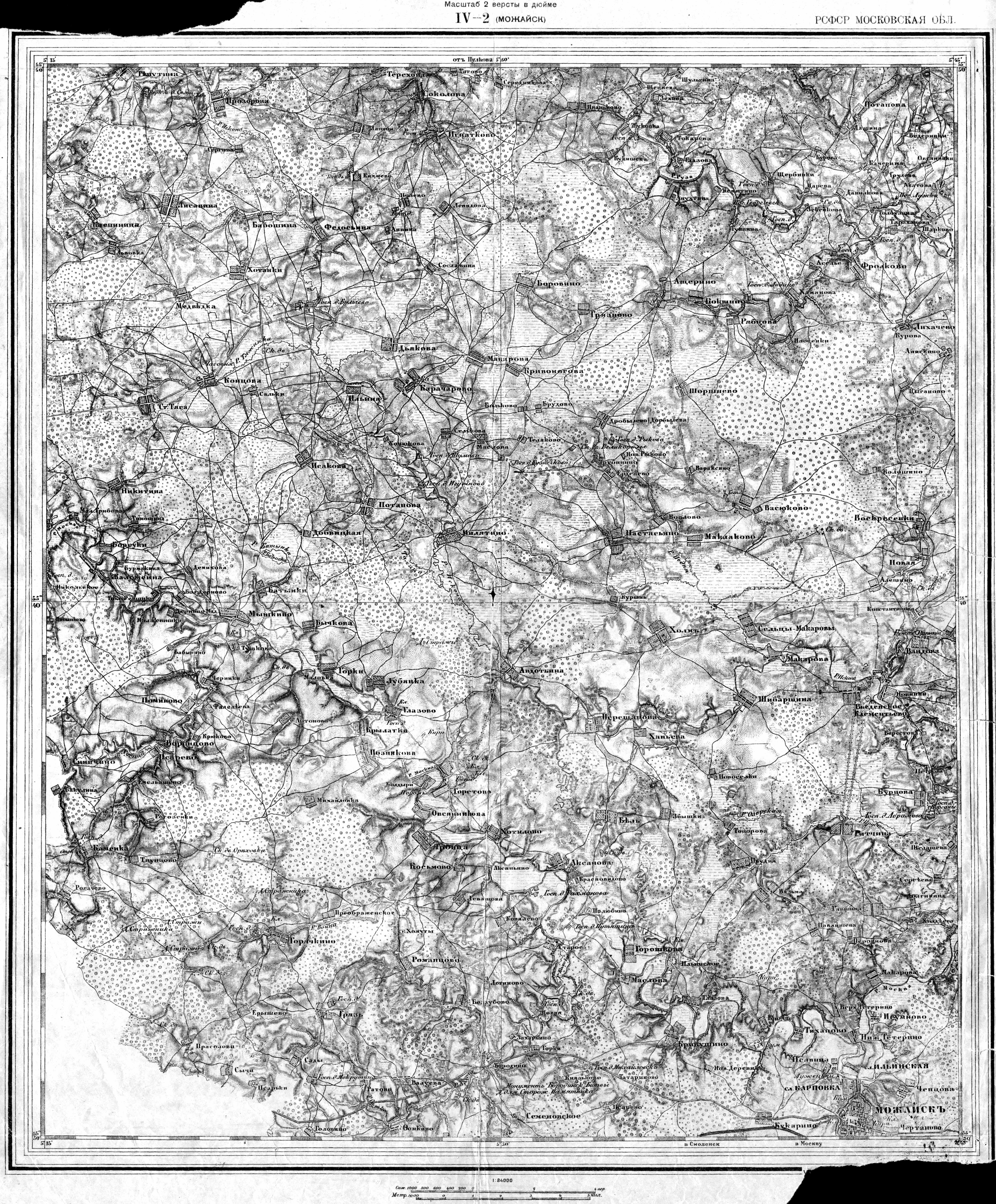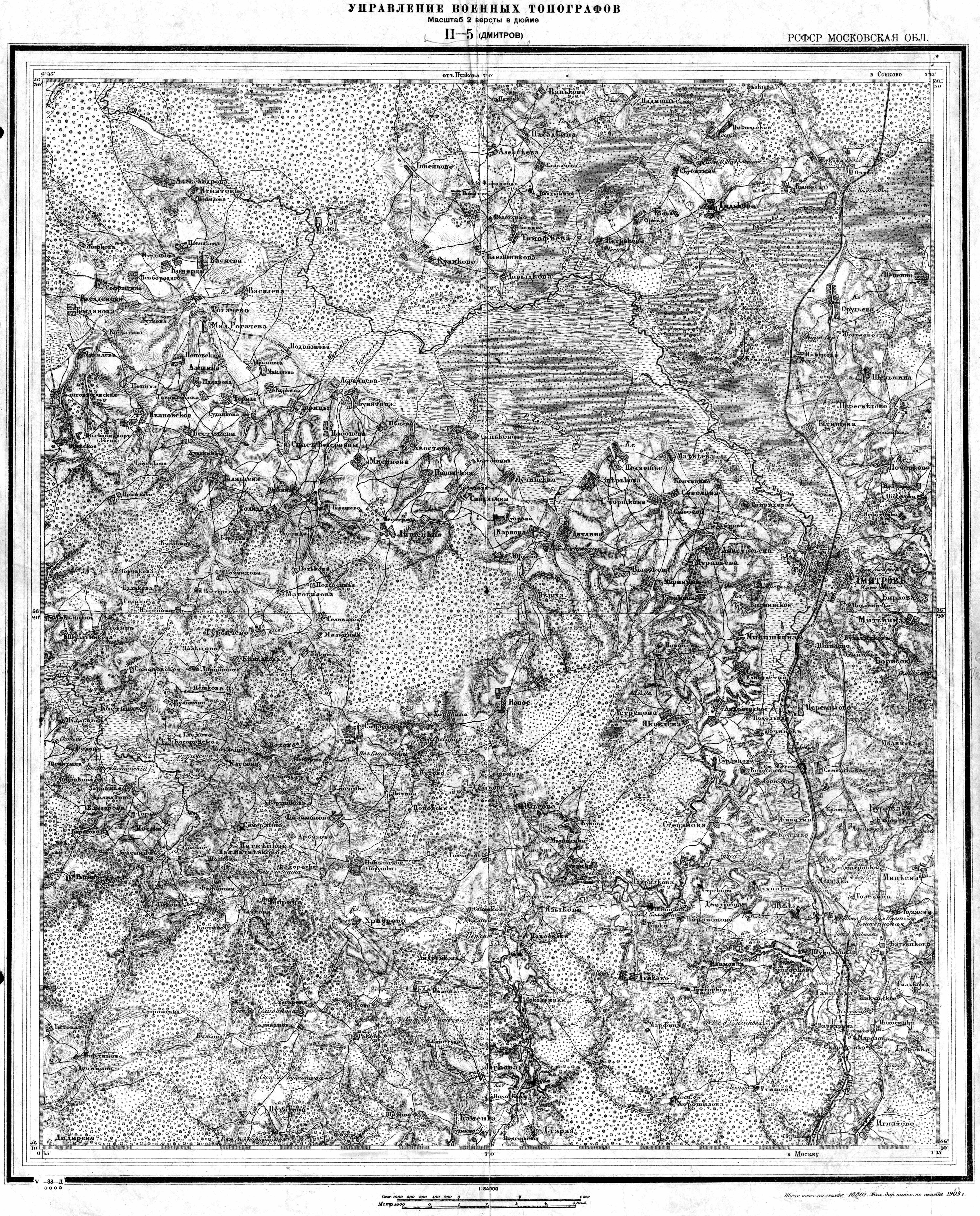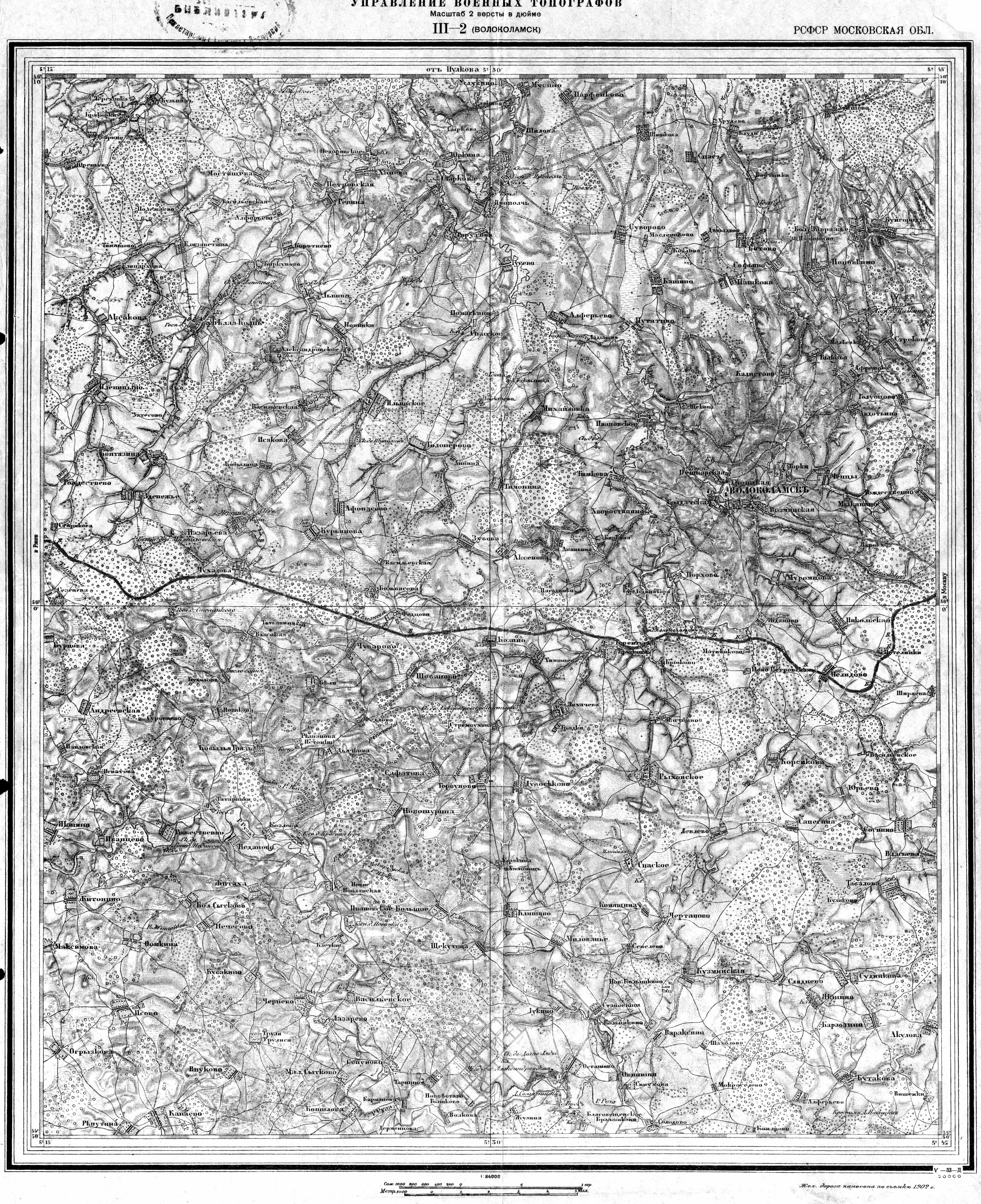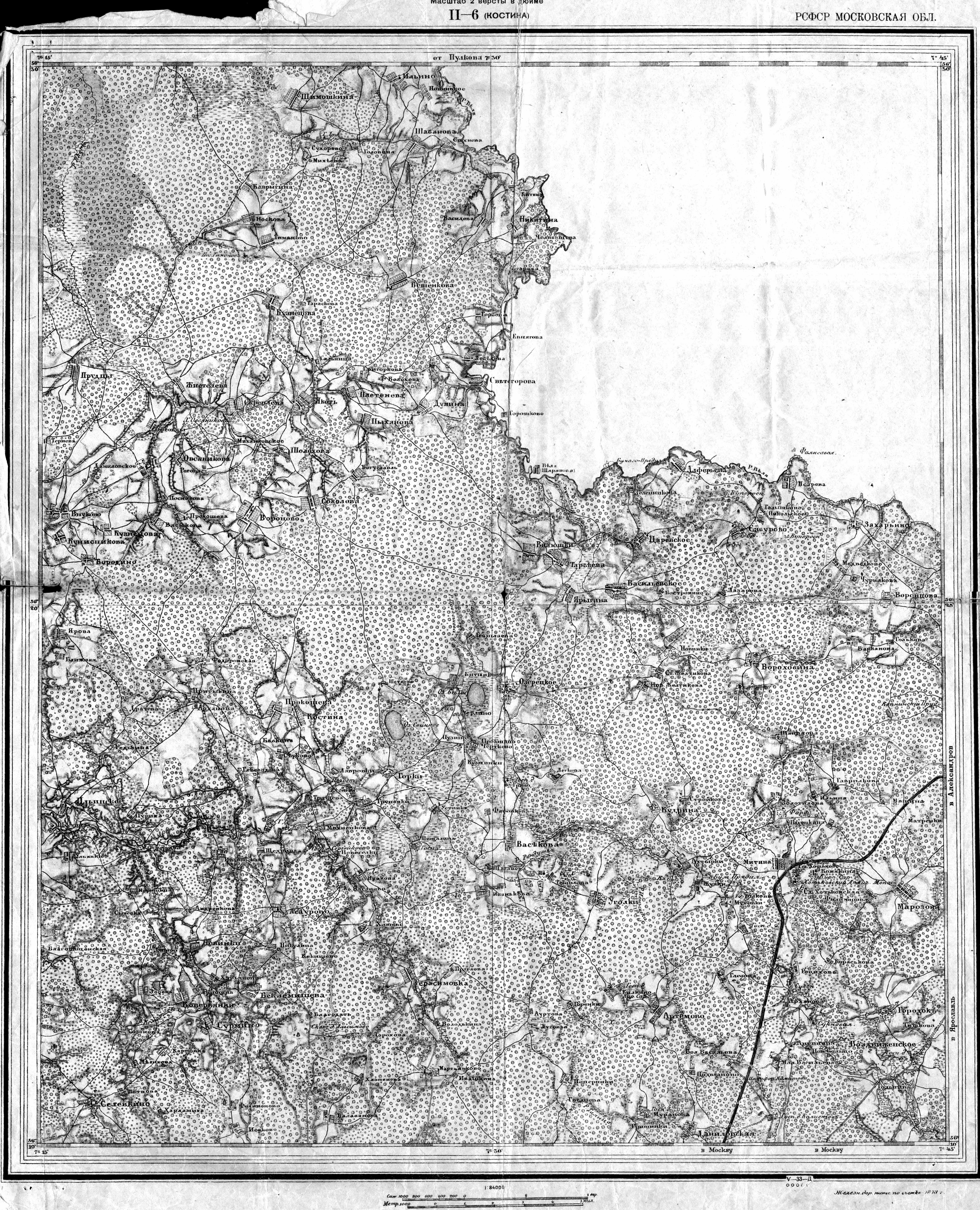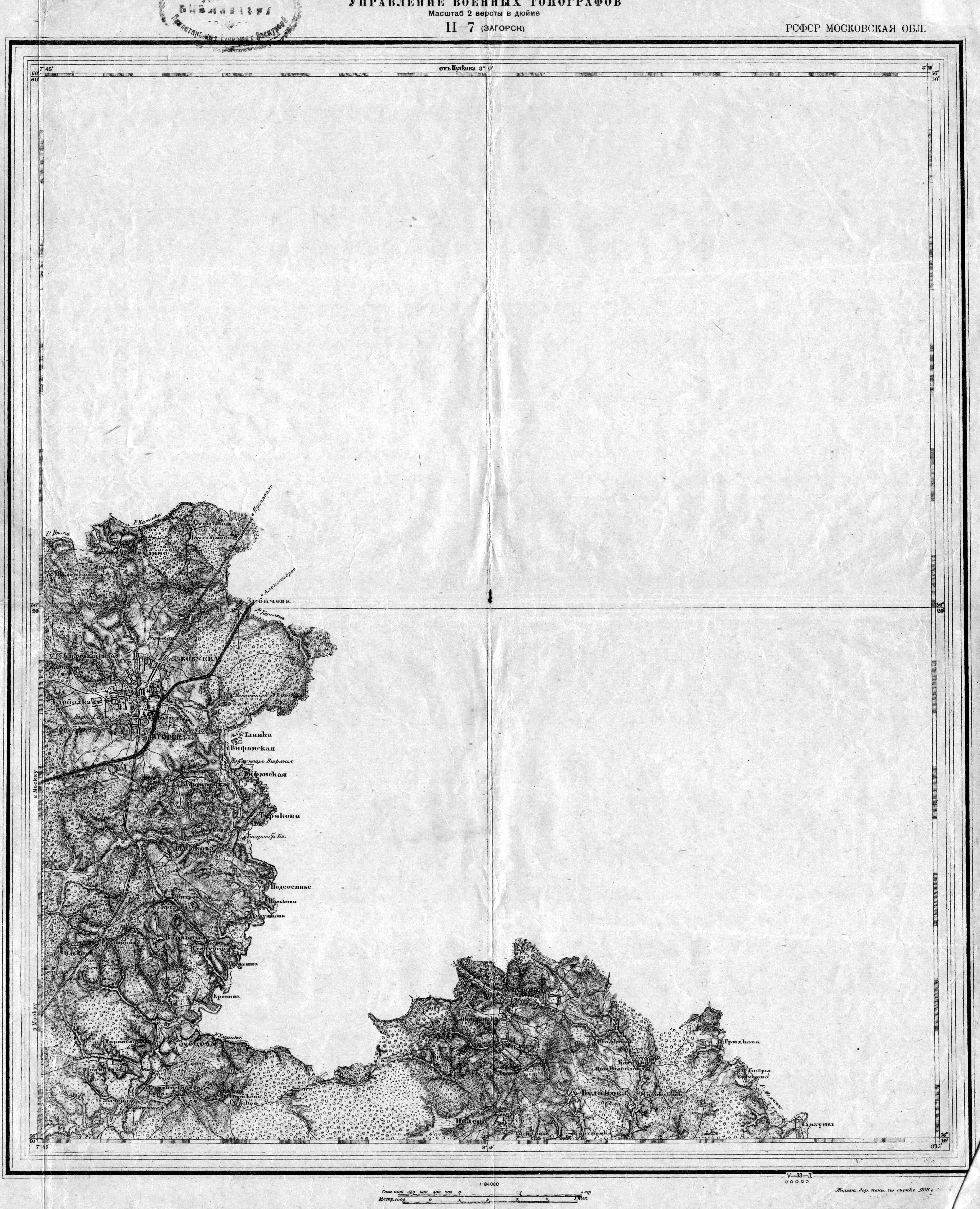 Топографическая карта Московской губернии выполнена в масштабе 1:84 000 или 2 версты в дюйме. В переводе на современную метрическую систему это означает, что в 1 см карты показаны 840 метров местности.