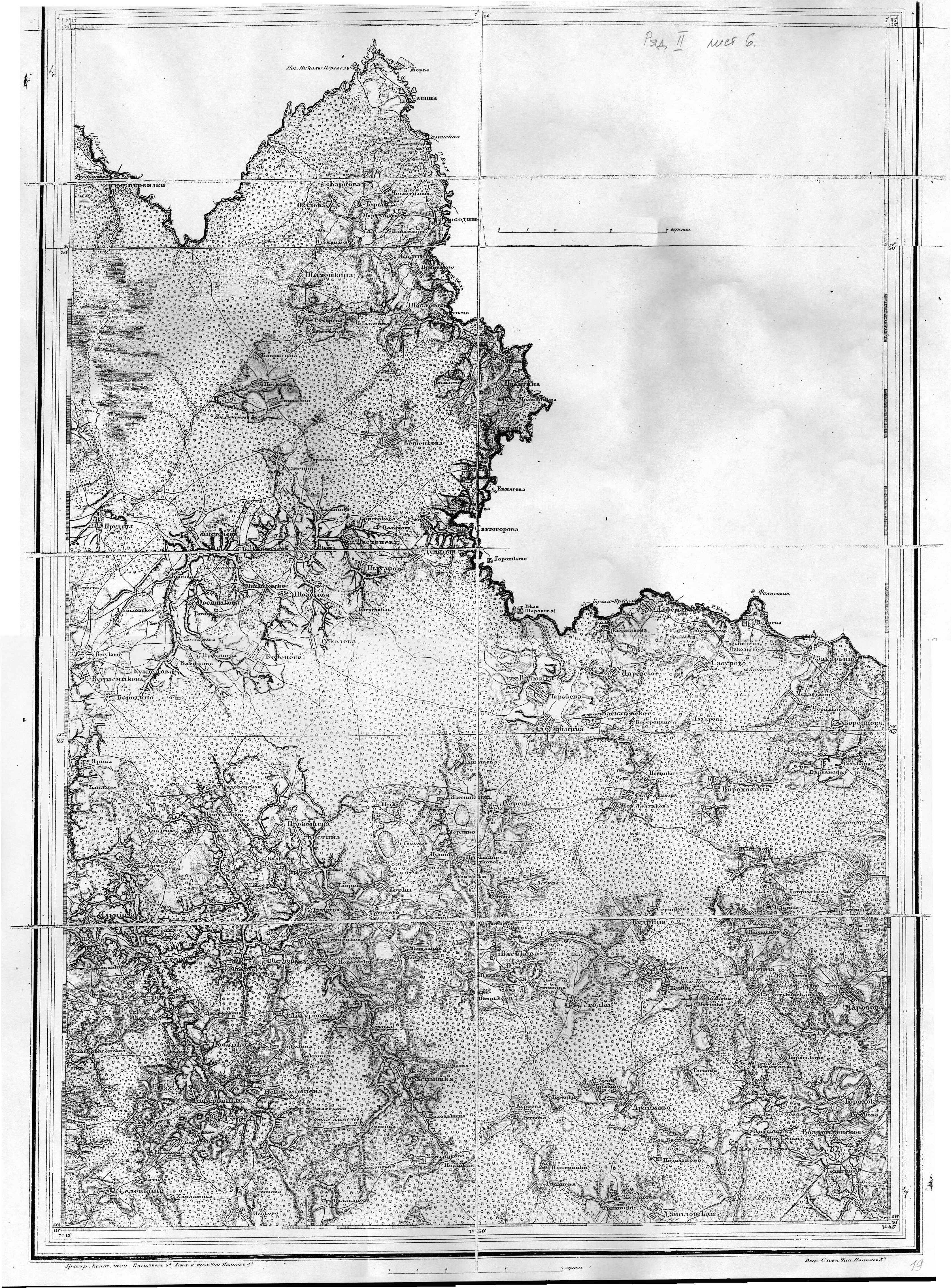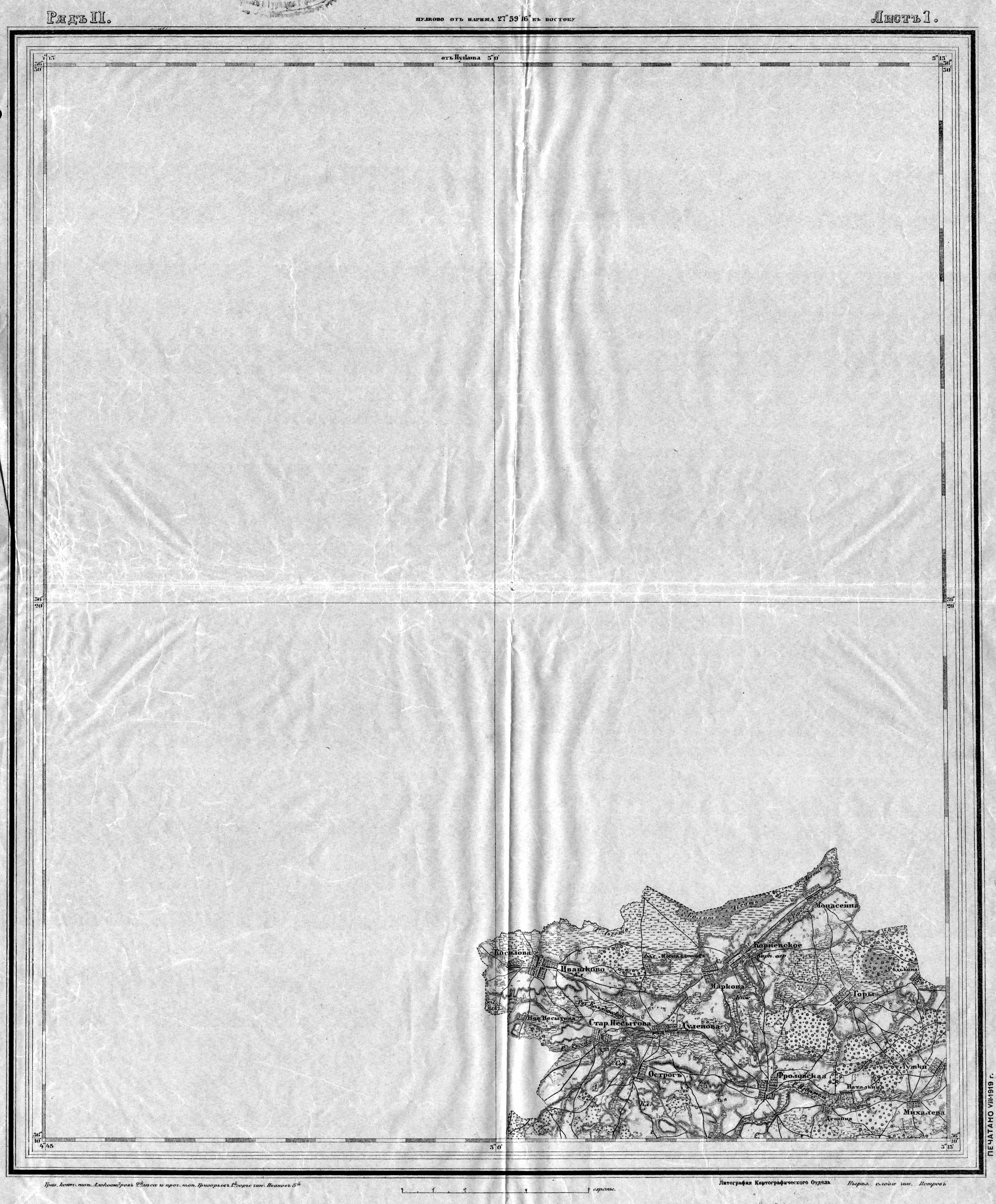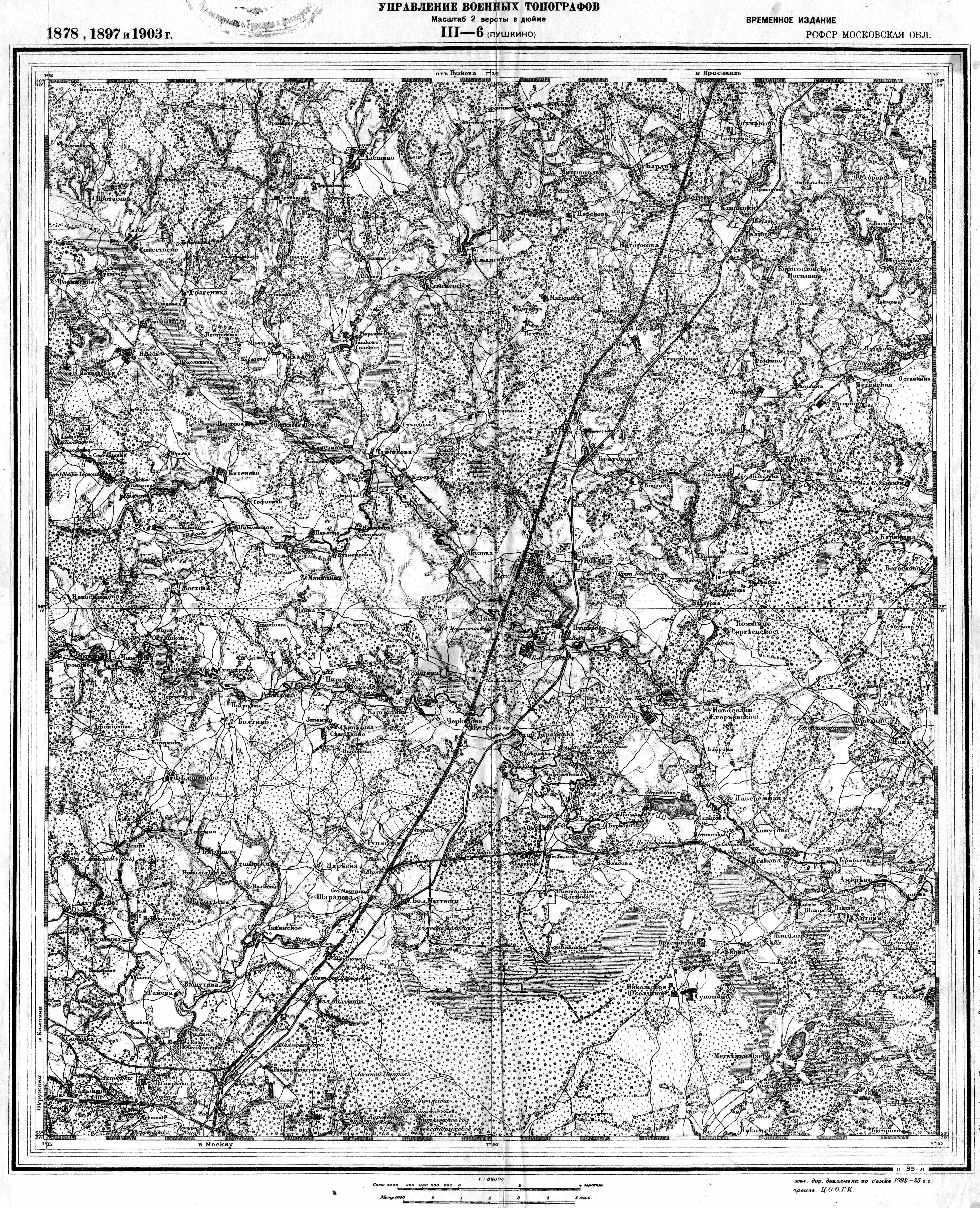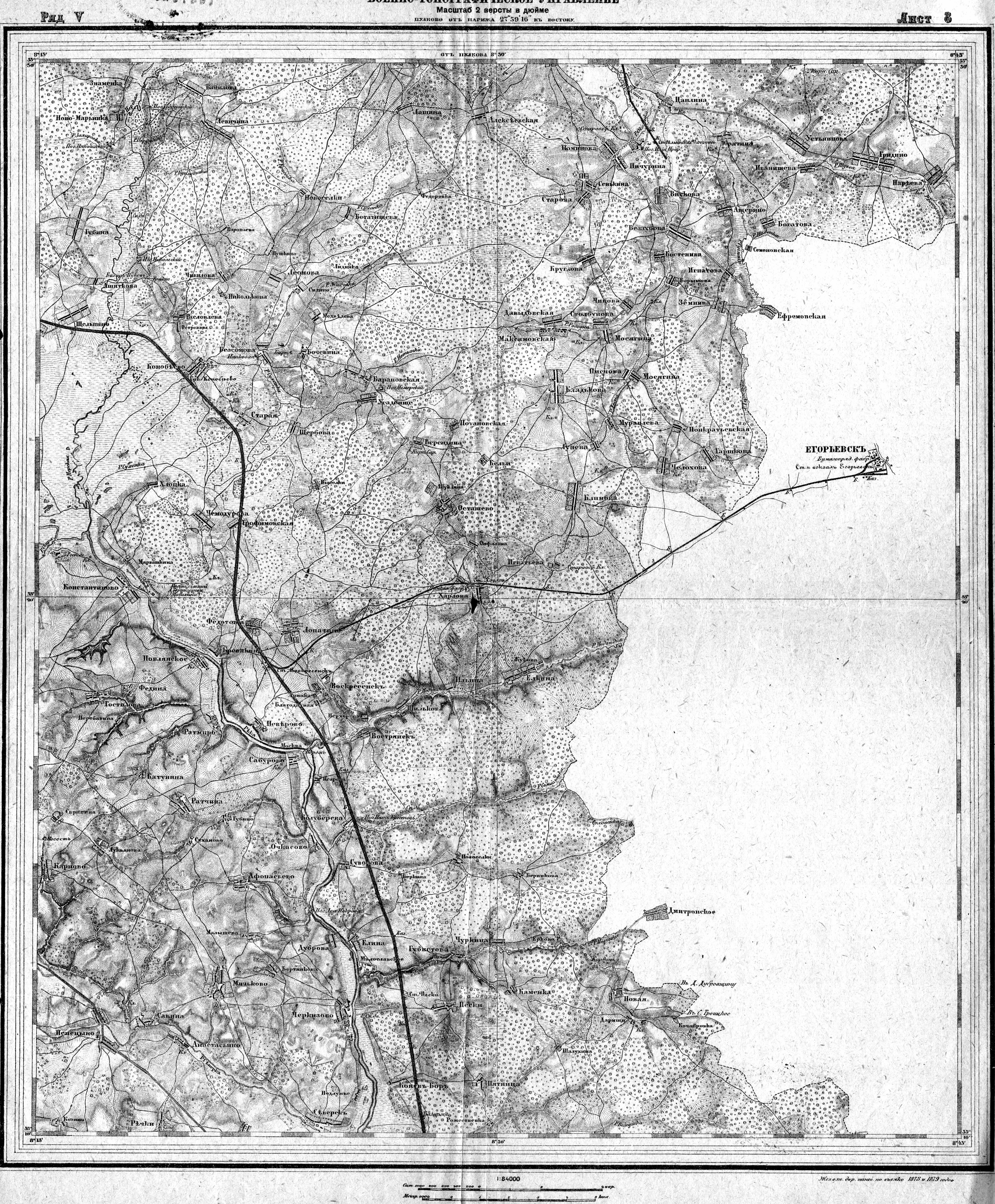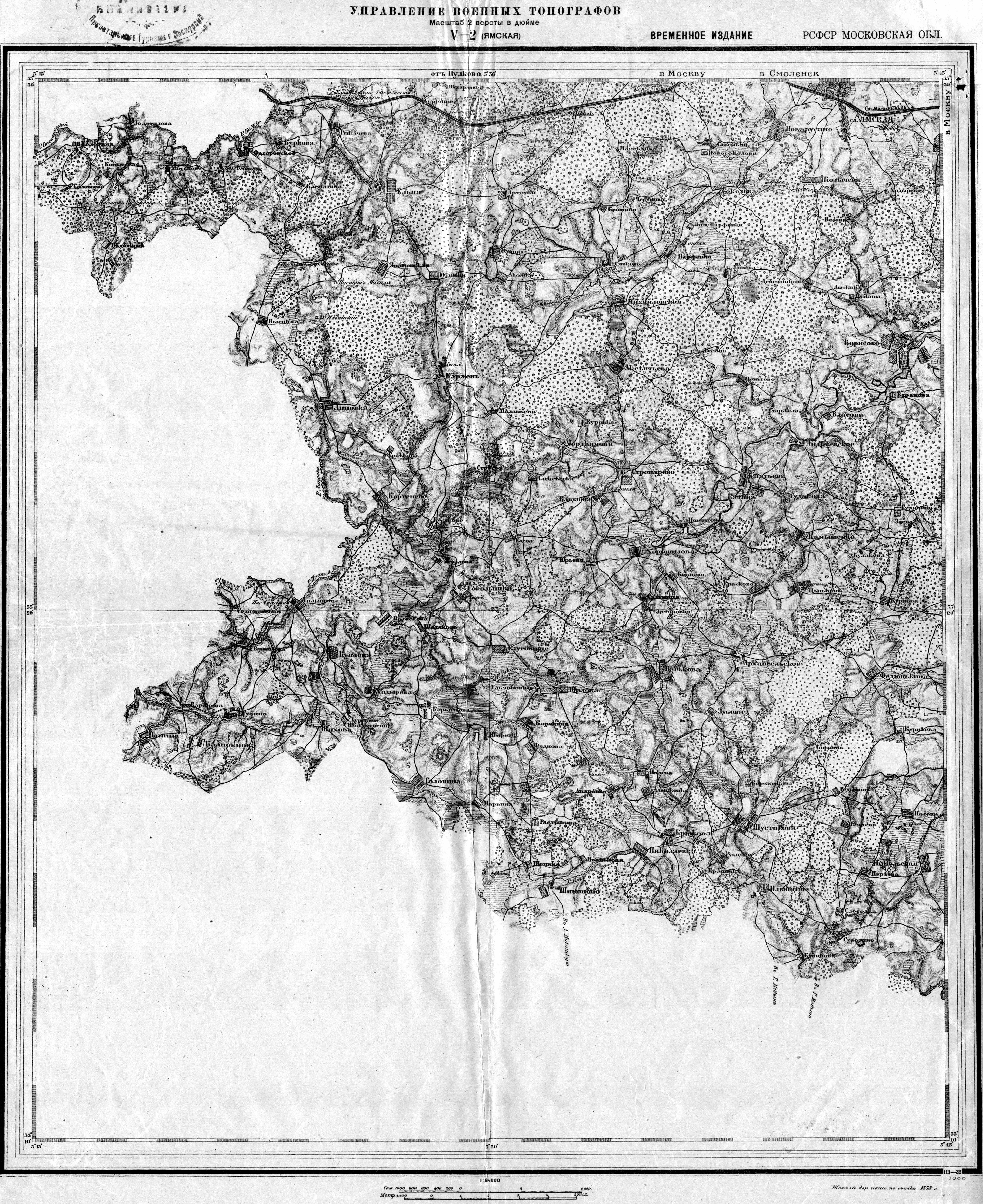 Топографическая карта Московской губернии выполнена в масштабе 1:84 000 или 2 версты в дюйме. В переводе на современную метрическую систему это означает, что в 1 см карты показаны 840 метров местности.
