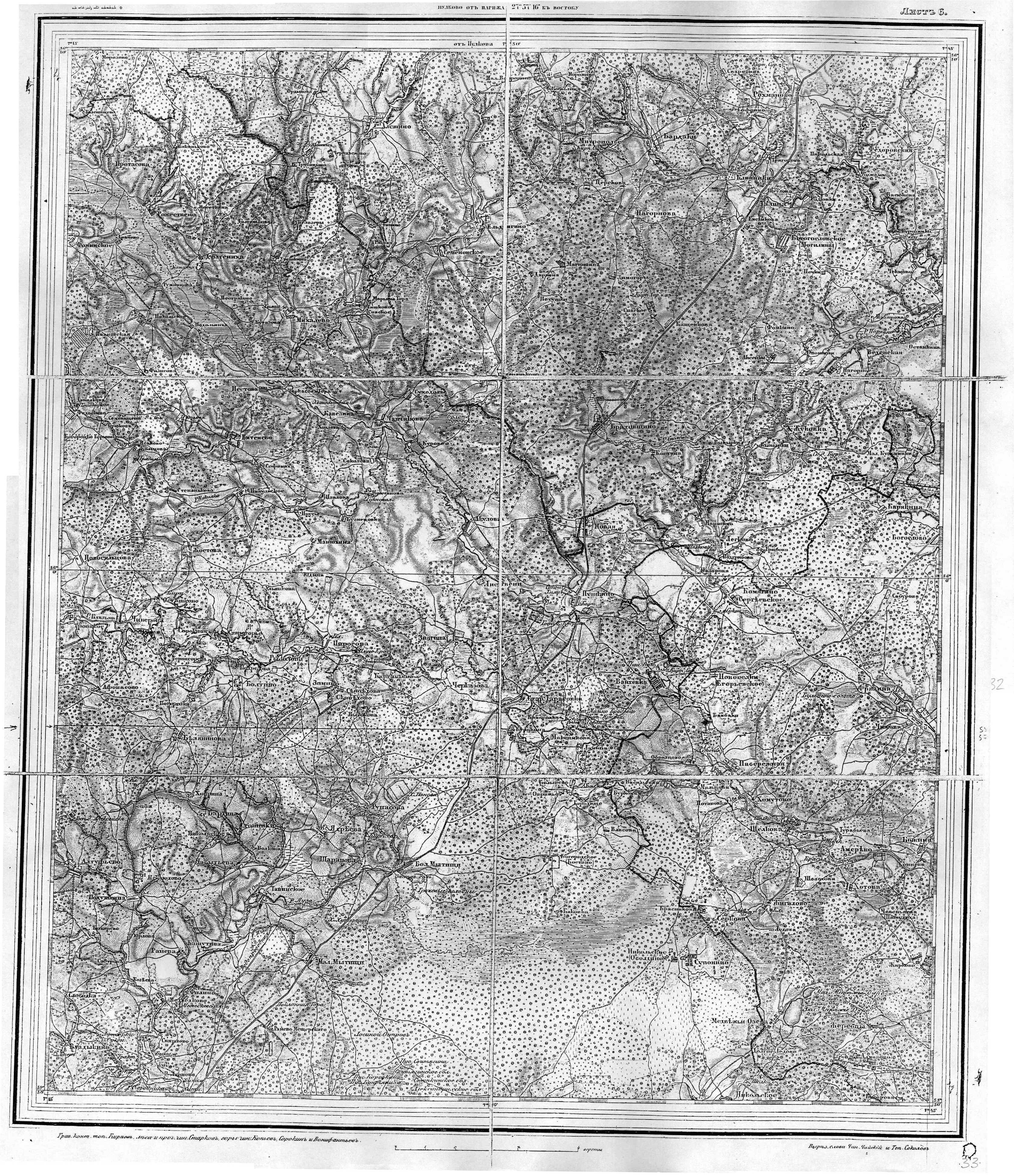 Топографическая карта Московской губернии отпечатана с гравюры на меди на 40 листах. Отдельным листом к карте приложен сборный лист.