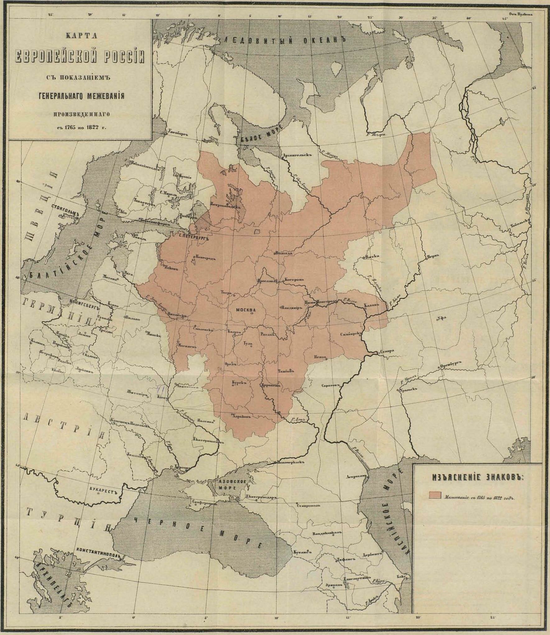 Карта Европейской России с показанием генерального межевания произведенного с 1765 г. по 1822 г.: