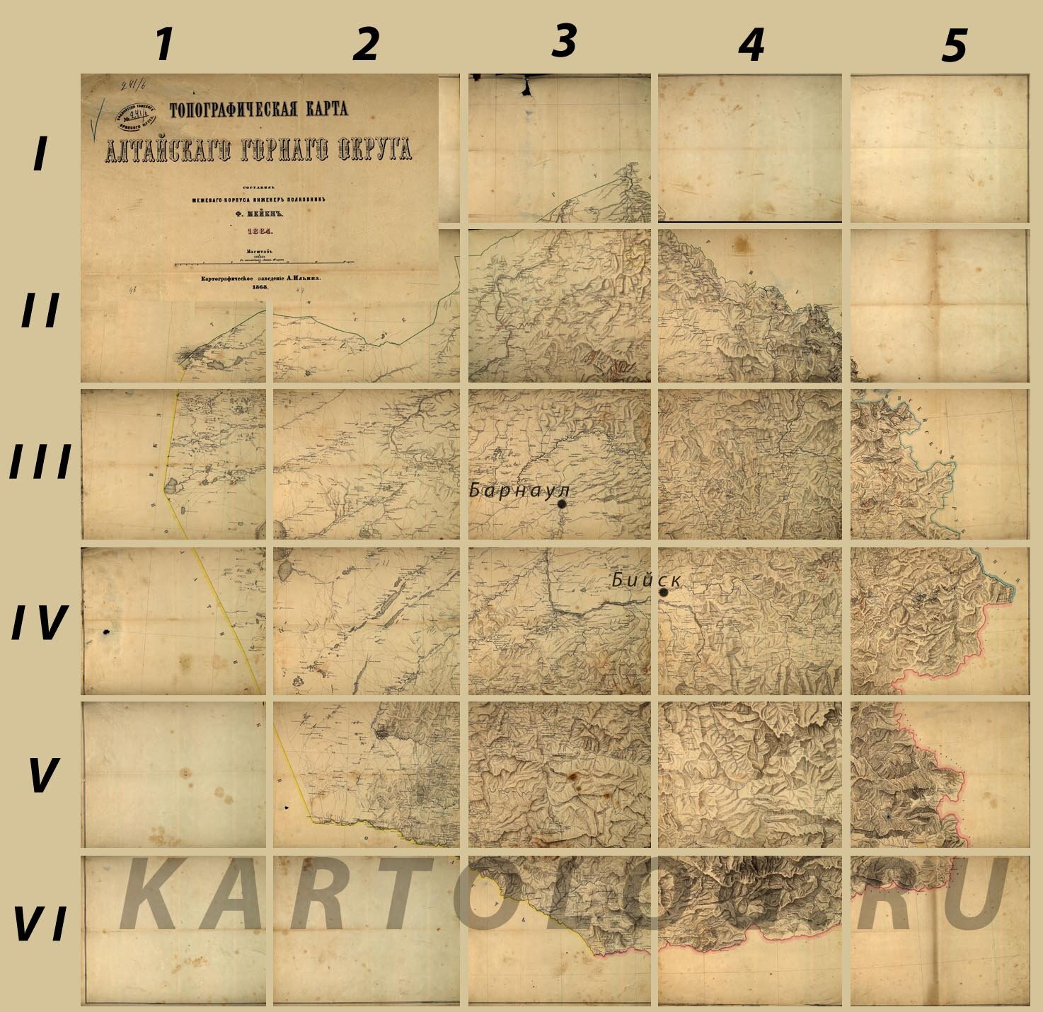 Сборный лист топографической карты Алтайского Горного округа: