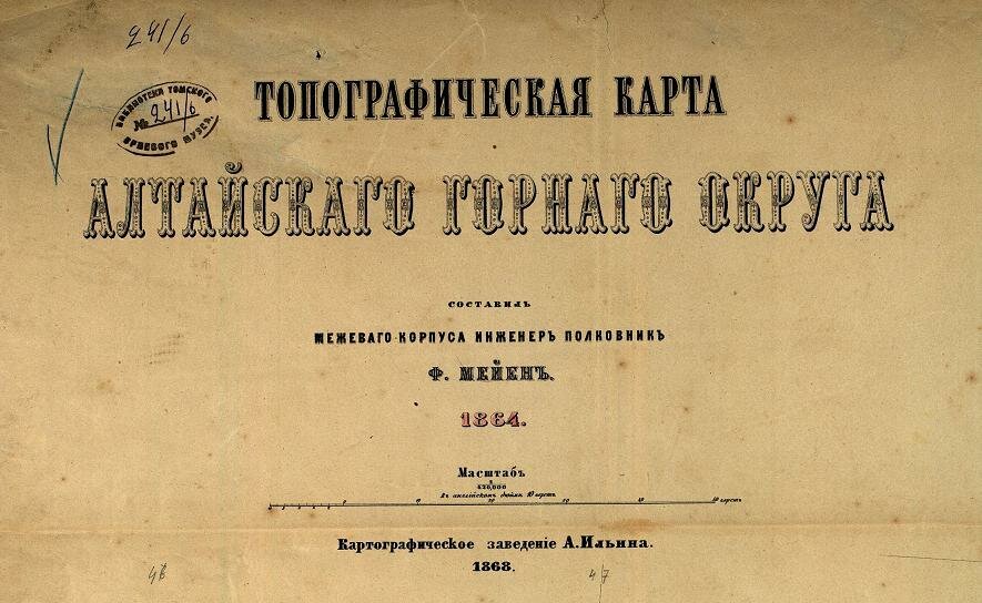 Топографическая карта Алтайского Горного округа была издана в картографическом заведении А. Ильина в 1868 году. Стоит отметит, что картографическое заведение А. Ильина — это первое специализированное картографическое предприятие в России. Кроме представленной карты в нем были изданы многочисленные фундаментальные атласы мира и России, тематические карты, учебные карты и атласы.
