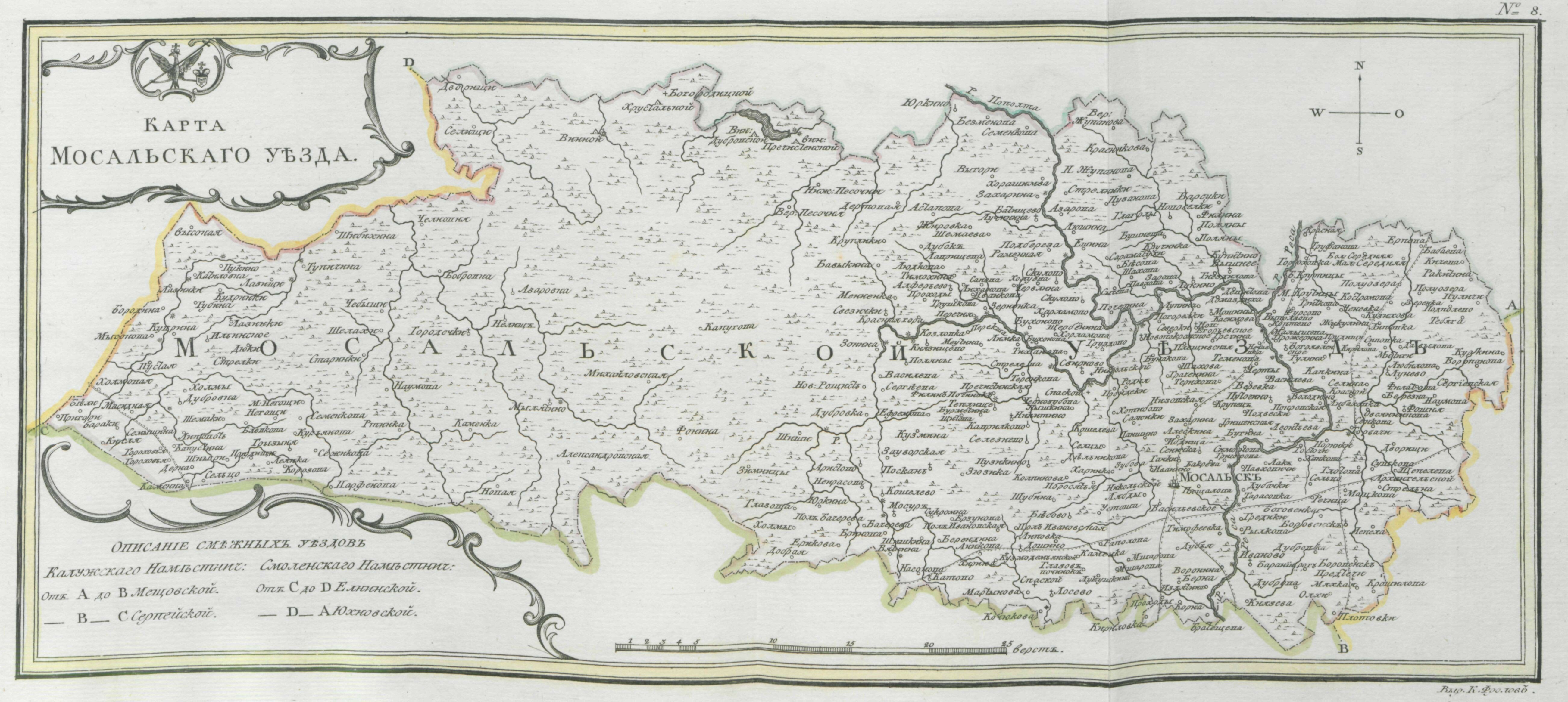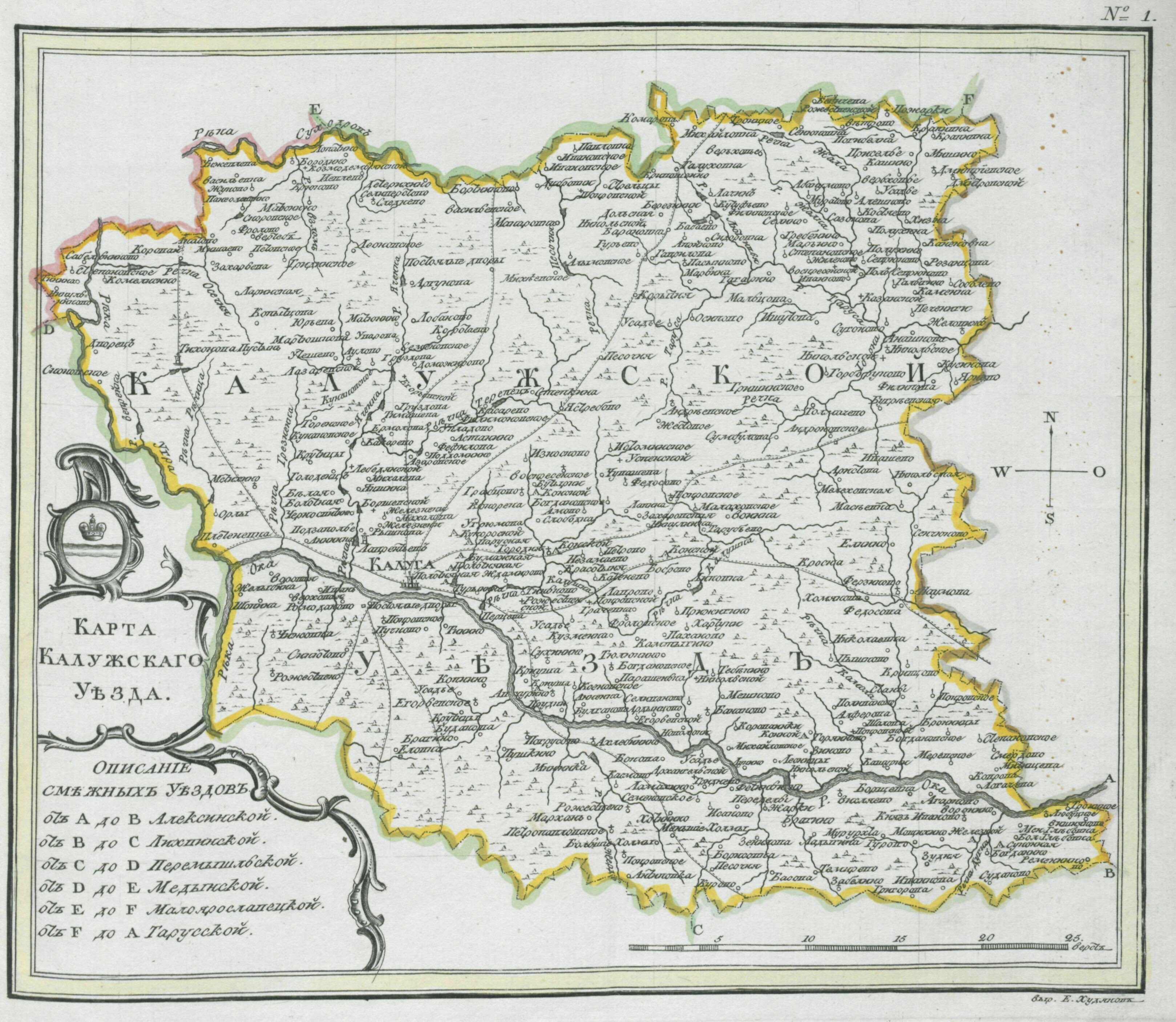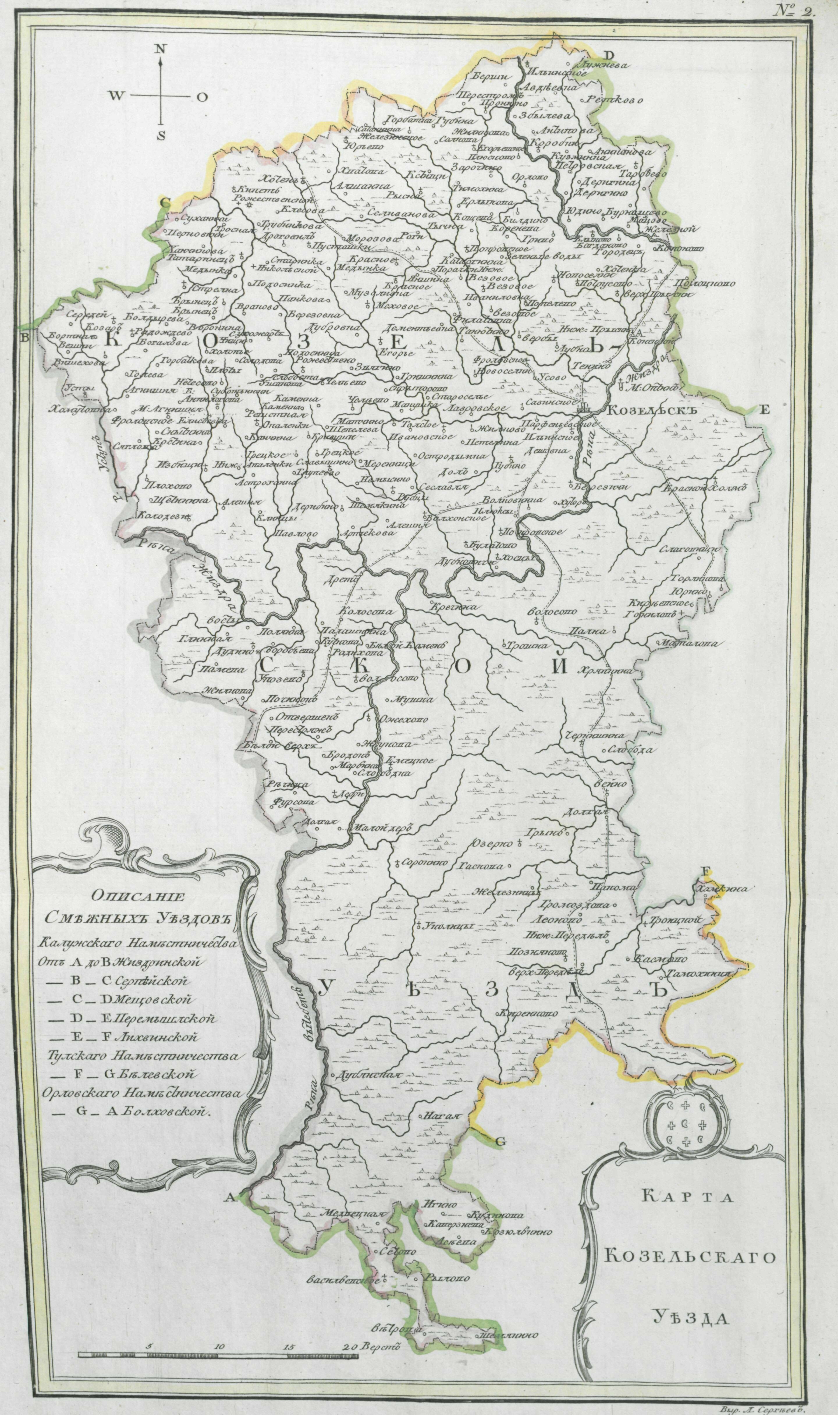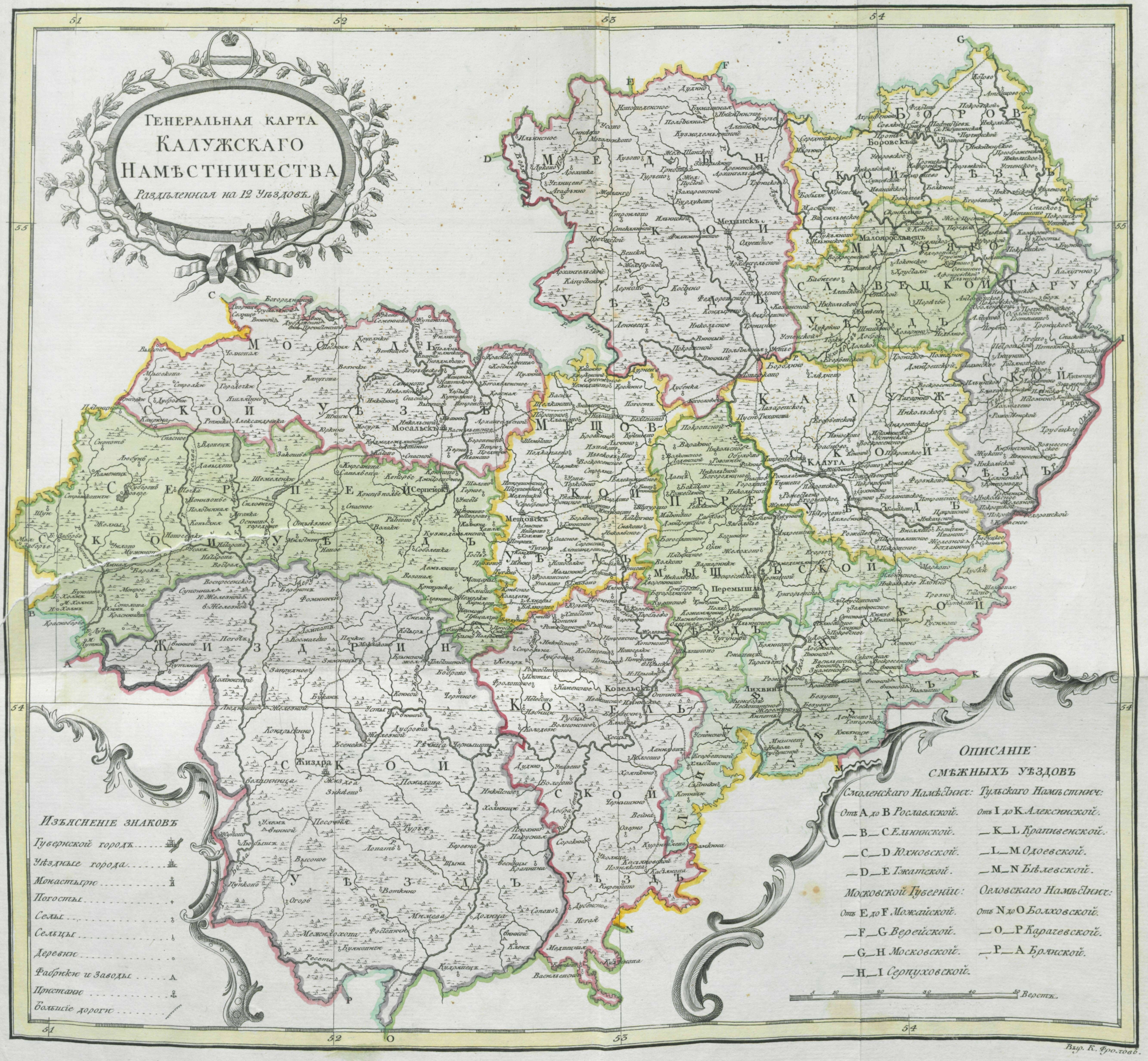 Составлен из карт, приложенных к изданию: «Топографическое описание Калужского наместничества», Спб., 1785 г.