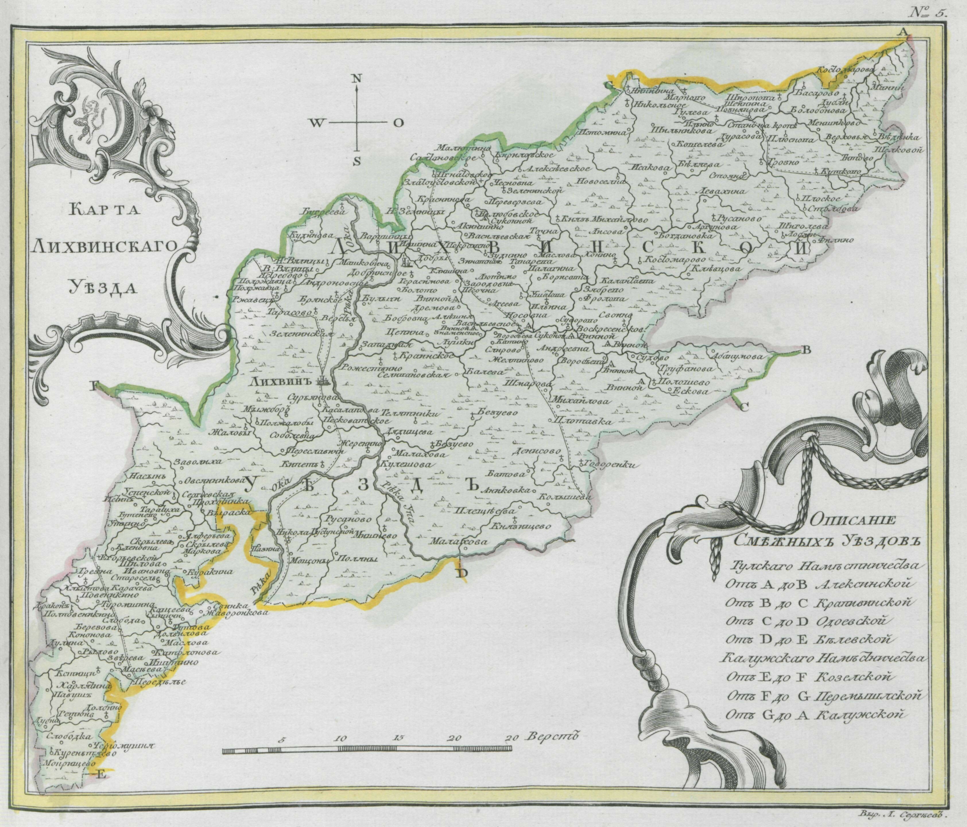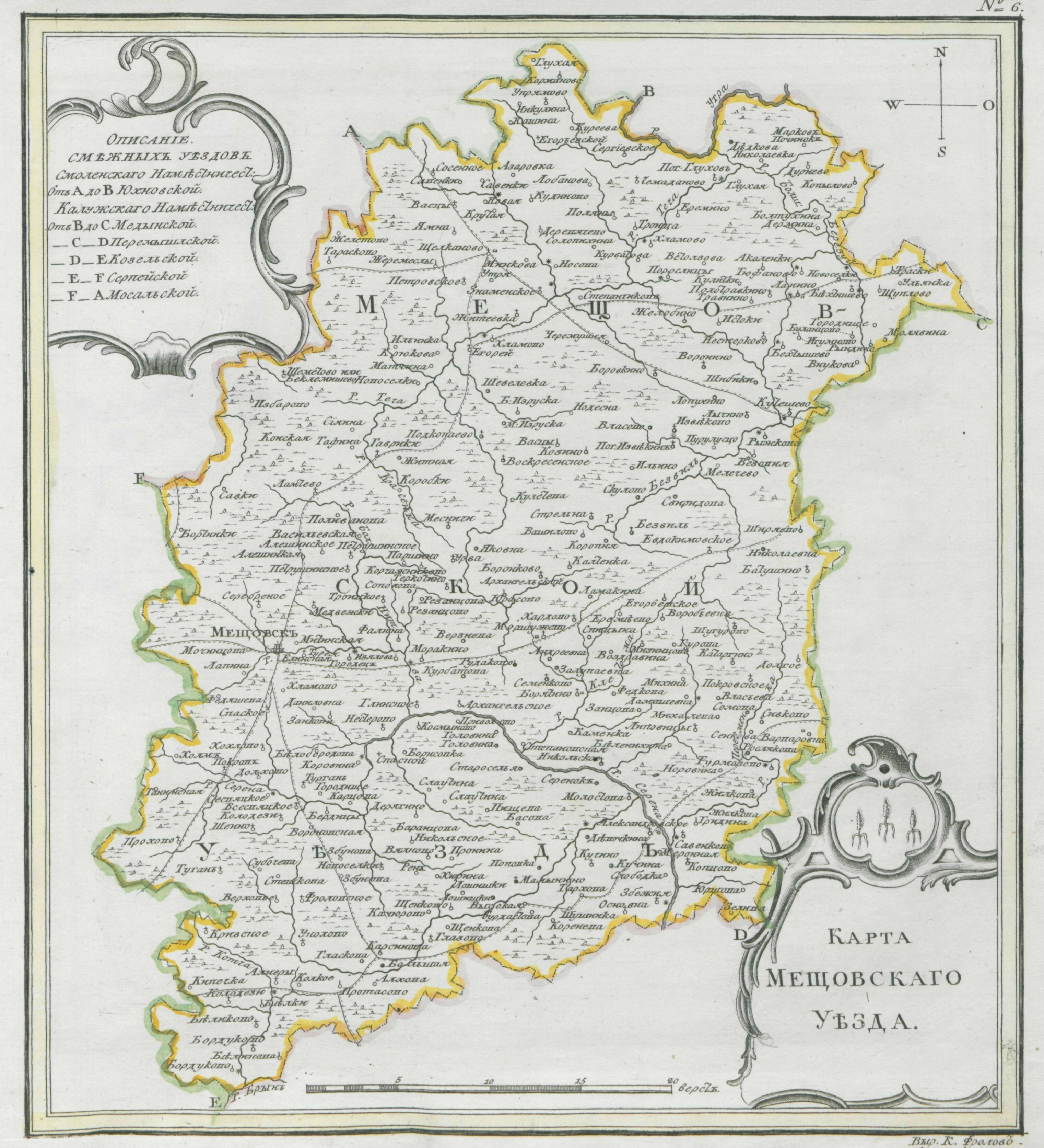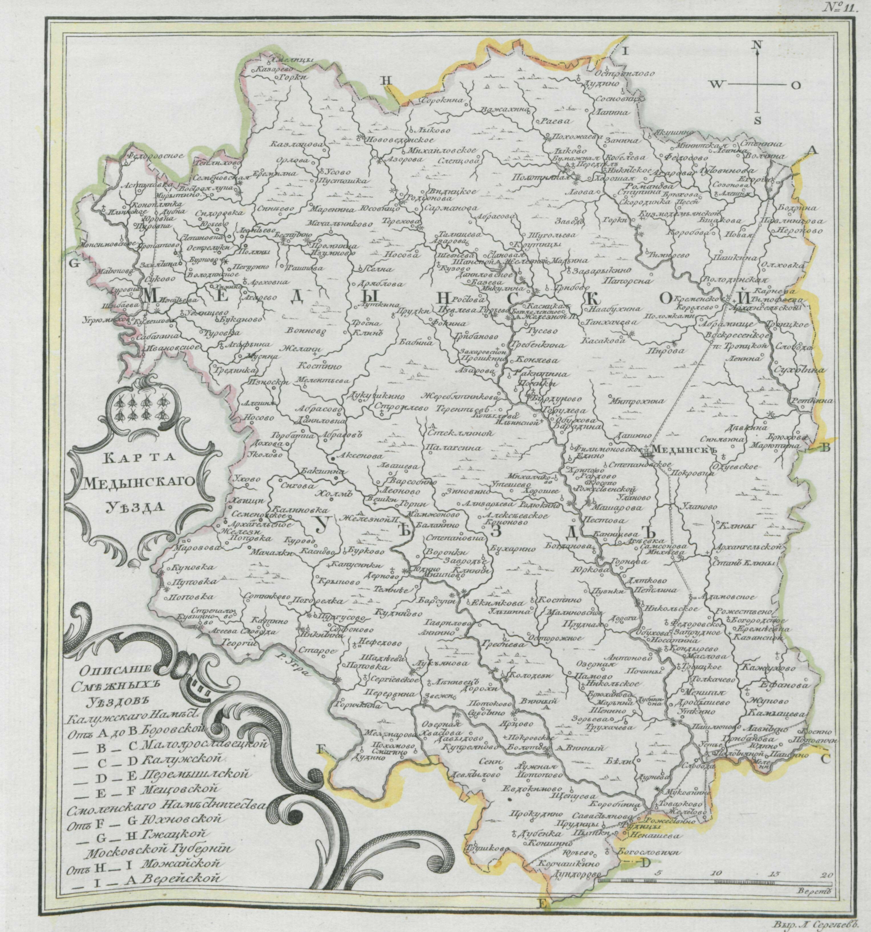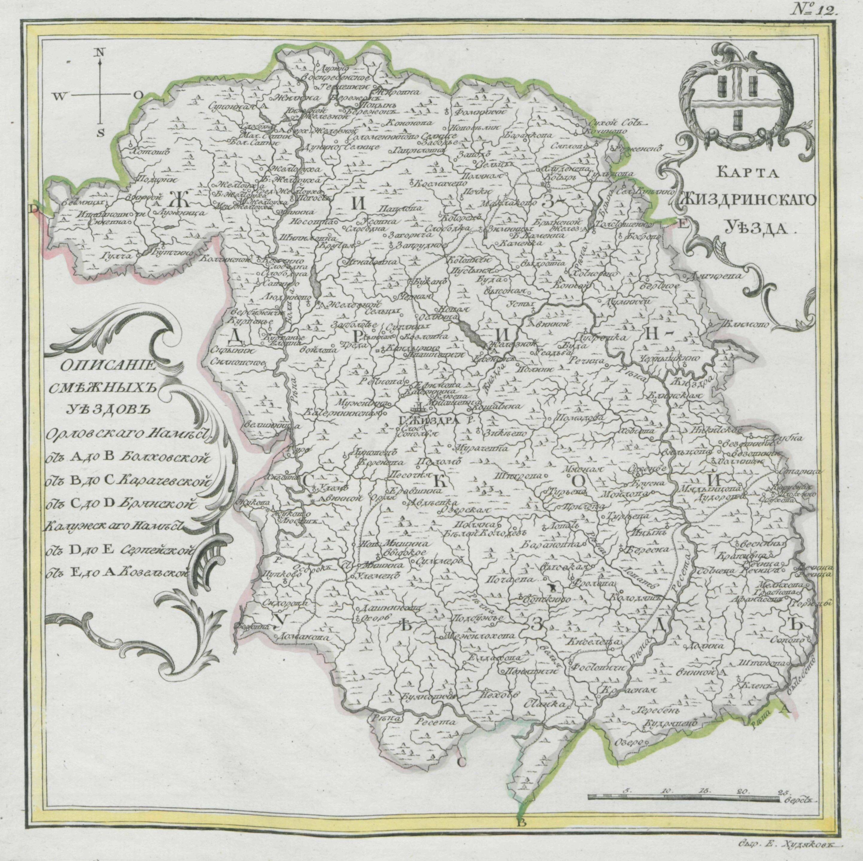 Составлен из карт, приложенных к изданию: «Топографическое описание Калужского наместничества», Спб., 1785 г.