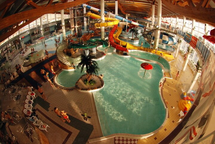 Бассейны в парке тоже очень необычны. Есть огромный бассейн с волной. Плавая в котором, появляются ощущения, что Вы находитесь в море. Глубина бассейна достигает 2 метров.