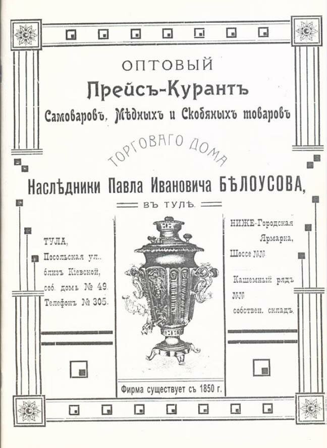 | Название: | Оптовый прейскурант самоваров, медных и скобяных товаров торгового дома Наследники Павла Ивановича Белоусова в Туле | |