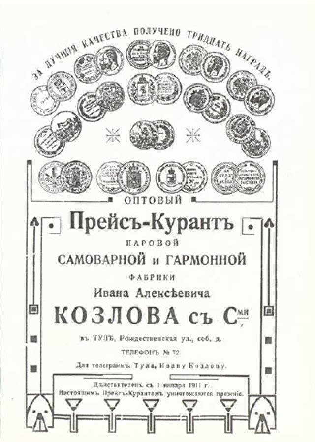Оптовый прейскурант паровой самоварной и гармонной фабрики Ивана Алексеевича Козлова