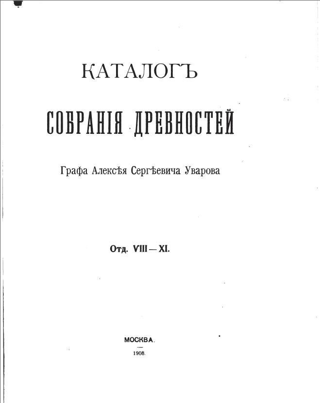 Каталог собрания древностей графа Алексея Сергеевича Уварова