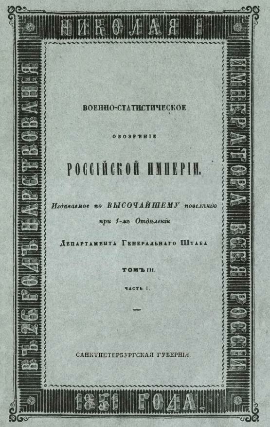 | Название: | Военно-статистическое обозрение Российской Империи. Том III. Часть I. Санкт-Петербургская губерния. | |
