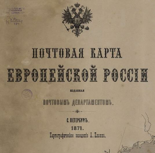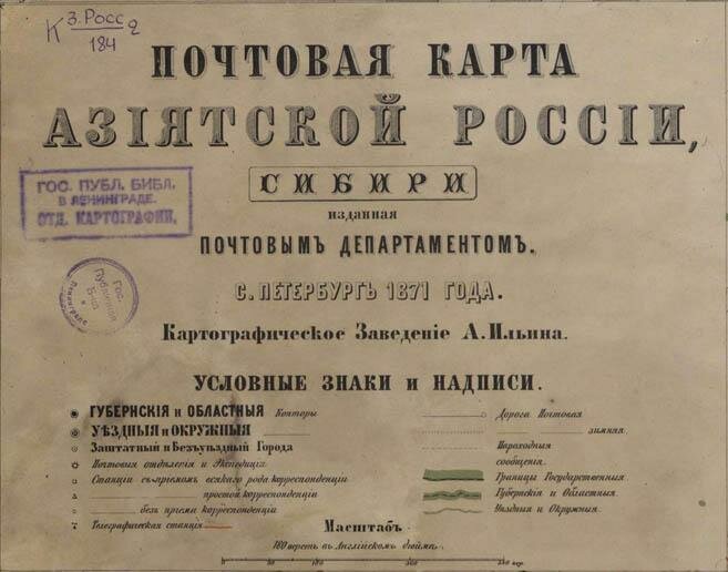 Почтовая карта Азиатской России, Сибири, 1871 г.